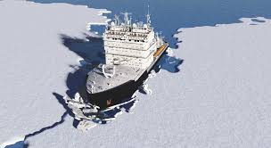 flamante e imponente buque rompehielos. El rompe hielo se encuentra en el