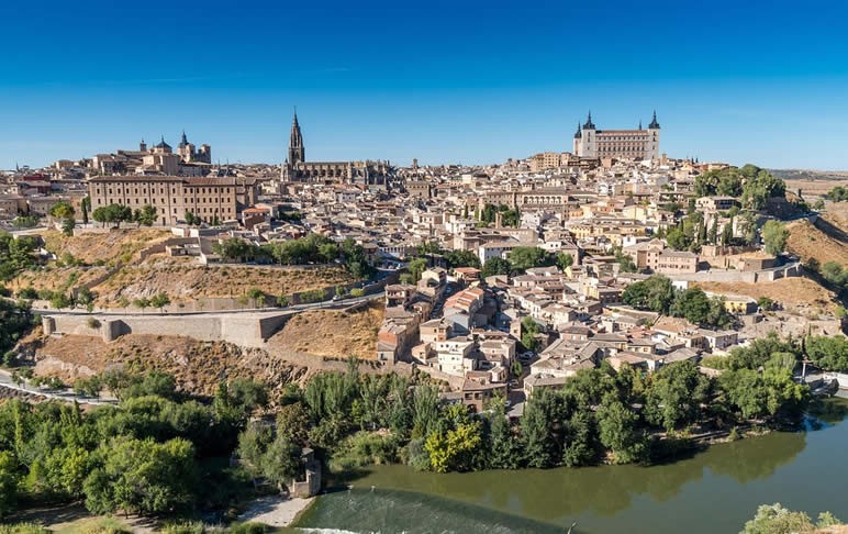 Después del desayuno, nos acercaremos a visitar Toledo, ciudad Patrimonio de la Humanidad, que llego a ser la ciudad Imperial más monumental de Europa. La mezcla de cristianos, musulmanes y judíos con sus representaciones arquitectónicas; la catedral gótica, la mezquita del s. X y dos Sinagogas, han dado ese carácter universal a Toledo. Comida en Toledo y tiempo libre antes de regresar al tren en Aranjuez. Mientras cenamos a bordo el tren llegara a Alcázar de San Juan. Noche en Alcázar de San Juan.